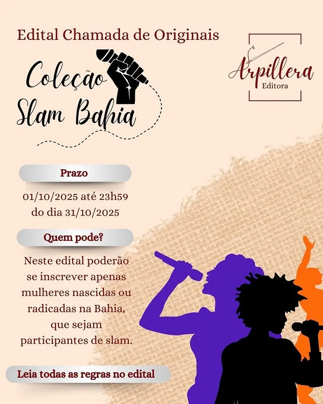 Concurso de contos e poesia com inscrições abertas até 30-10-2025, organizado por Beatriz, da “Contos, poemas e outros mundos & literatura lésbica”; Lelê da “Confissões de uma tagarela em crise” e Nico da ” Lua dentro de mim”. As categorias temáticas aceitas são: gênero/tema livre.