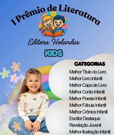 Concurso de contos com inscrições abertas até 14-11-2025, organizado por Editora Holandas Kids. As categorias temáticas aceitas são: gênero/tema livre.