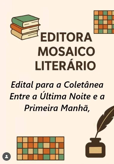 ✔ Estão abertas até 30-11-2025 as inscrições para Coletânea Entre a Última Noite e a Primeira Manhã, uma iniciativa literária organizada por Editora Mosaico Literário.